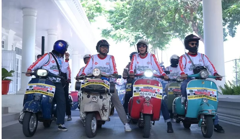 Karanganyar, Gesuri.id - Sabtu pagi yang cerah (11/10/2025) terasa berbeda di halaman Rumah Dinas Bupati Karanganyar. Deru mesin dua tak berpadu dengan aroma khas oli samping memenuhi udara, sementara warna-warni Vespa klasik dan modern berjajar rapi di bawah sinar matahari.