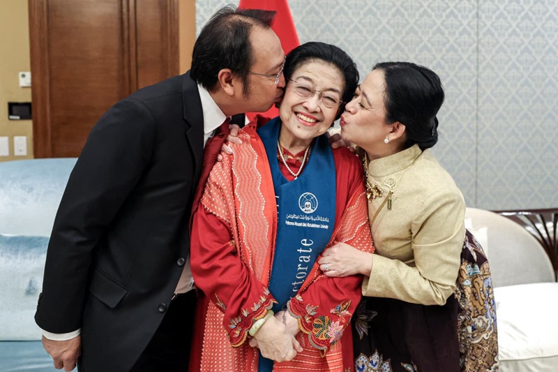 Riyadh, Gesuri.id - Penganugerahan gelar doktor kehormatan (Honoris Causa) dari Princess Naurah University (PNU) kepada Presiden Kelima RI yang juga Ketua Umum PDI Perjuangan Megawati Soekarnoputri menjadi kebahagiaan bagi keluarga. Putra dan putri Megawati, Ketua DPP PDIP Prananda Prabowo dan Ketua DPR Puan Maharani, memeluk dan mencium ibunda di momen bahagia tersebut.