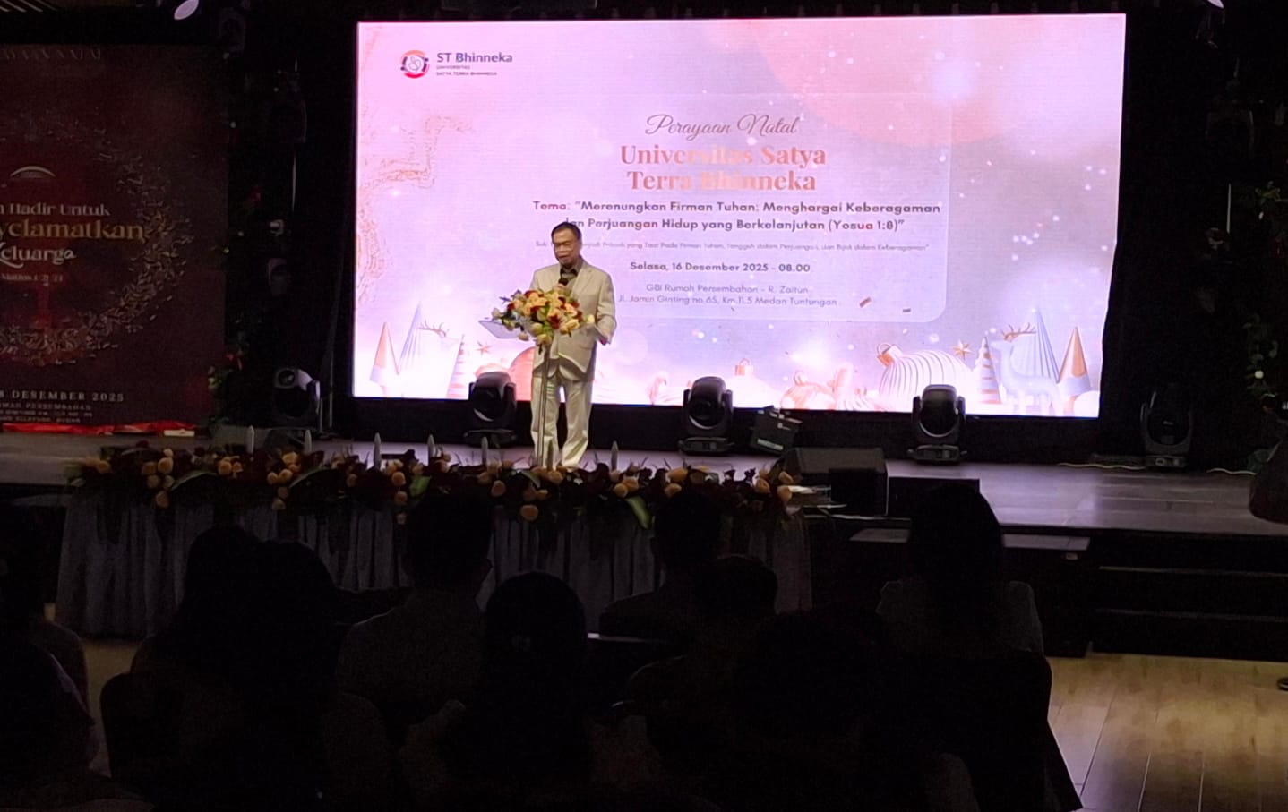Rektor Universitas ST Bhinneka, Bobby C. Halim, dalam sambutannya menyampaikan bahwa perayaan Natal 2025 merupakan tahun ketiga diselenggarakan oleh universitas. Ia berharap Firman Tuhan yang disampaikan Pdm Fendy Soloment dapat mengurai dan memperdalam makna tema yang diangkat.