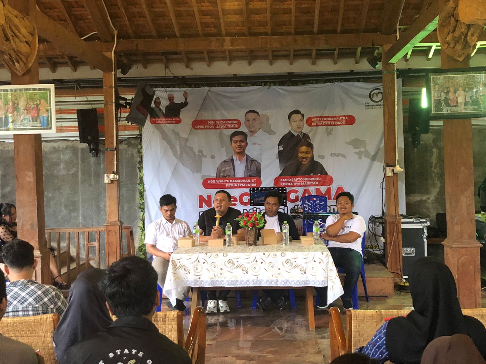 Kemudian Ketua TPM Ganjar Mahfud Jawa Timur Agil Wahyu, serta anggota DPRD Jawa Timur, Deni Wicaksono.